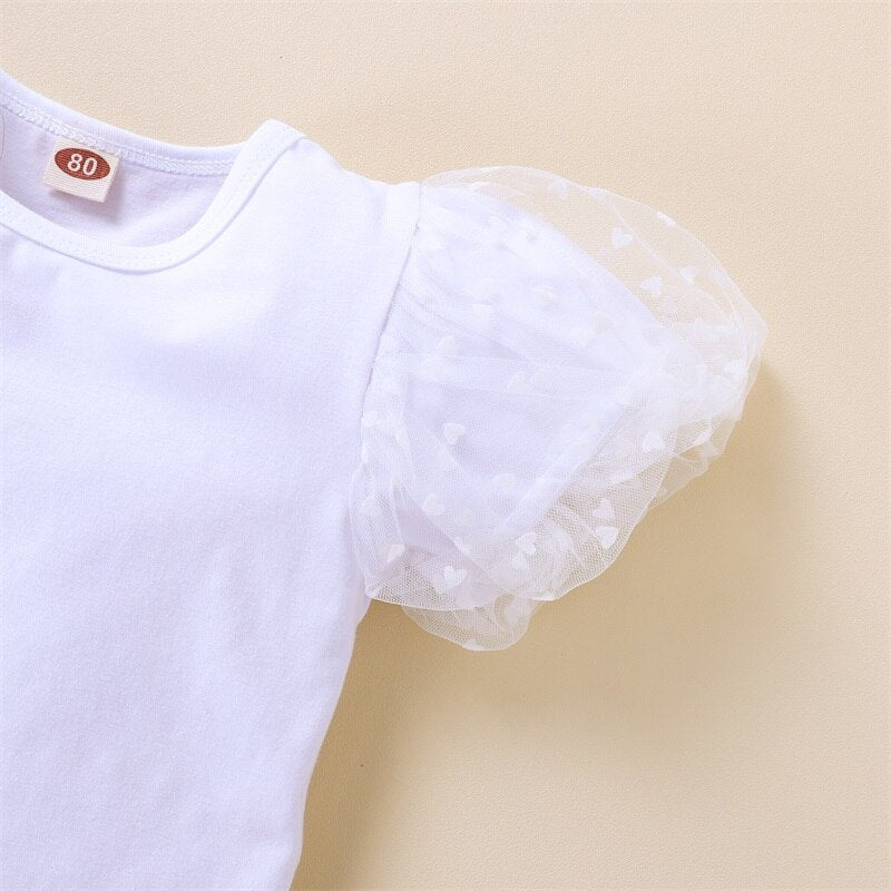 The soft, breathable fabric of the Baby Girls Two-Piece Clothes Outfit ensures all-day comfort, allowing your little girl to move freely without irritation. The short-sleeve T-shirt features charming mesh dot details, adding a touch of elegance, while the flare plaid pants provide a stylish twist on a classic design. Elastic waistbands make dressing easy and ensure a snug yet comfortable fit.